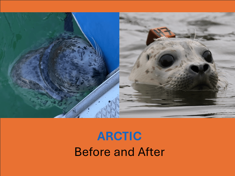 When he arrived at Wolf Hollow, Arctic weighed only 18 pounds, which is under average birth weight for harbor seals. On the day he was released, he weighed in at a whopping 64 pounds – the largest of the class of 2023!