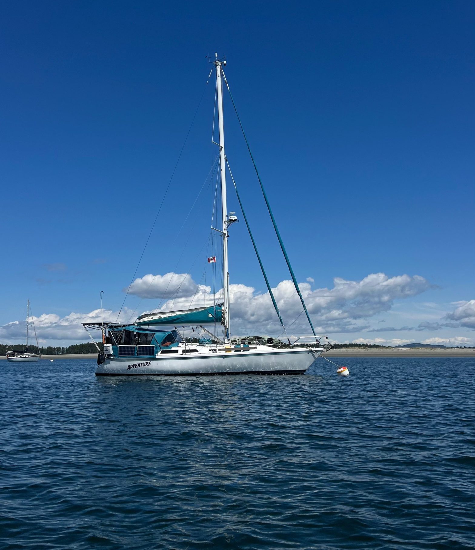 We threw the trap back in and headed to shore for a walk since Adventure was rocking too much for our liking. It didn’t take long for Kathy to convince me we could just sail across the US/Canadian border and grab a mooring ball at Stewart Island. It’s well-protected from the SW winds lashing us in this anchorage. If we left right away, the currents would still be in our favor.